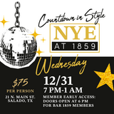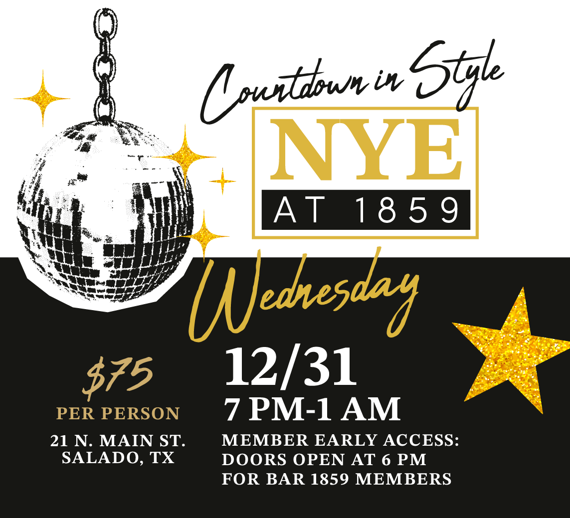 Ring in 2026 in style at Bar 1859 on Wednesday, December 31 from 7 PM–1 AM!